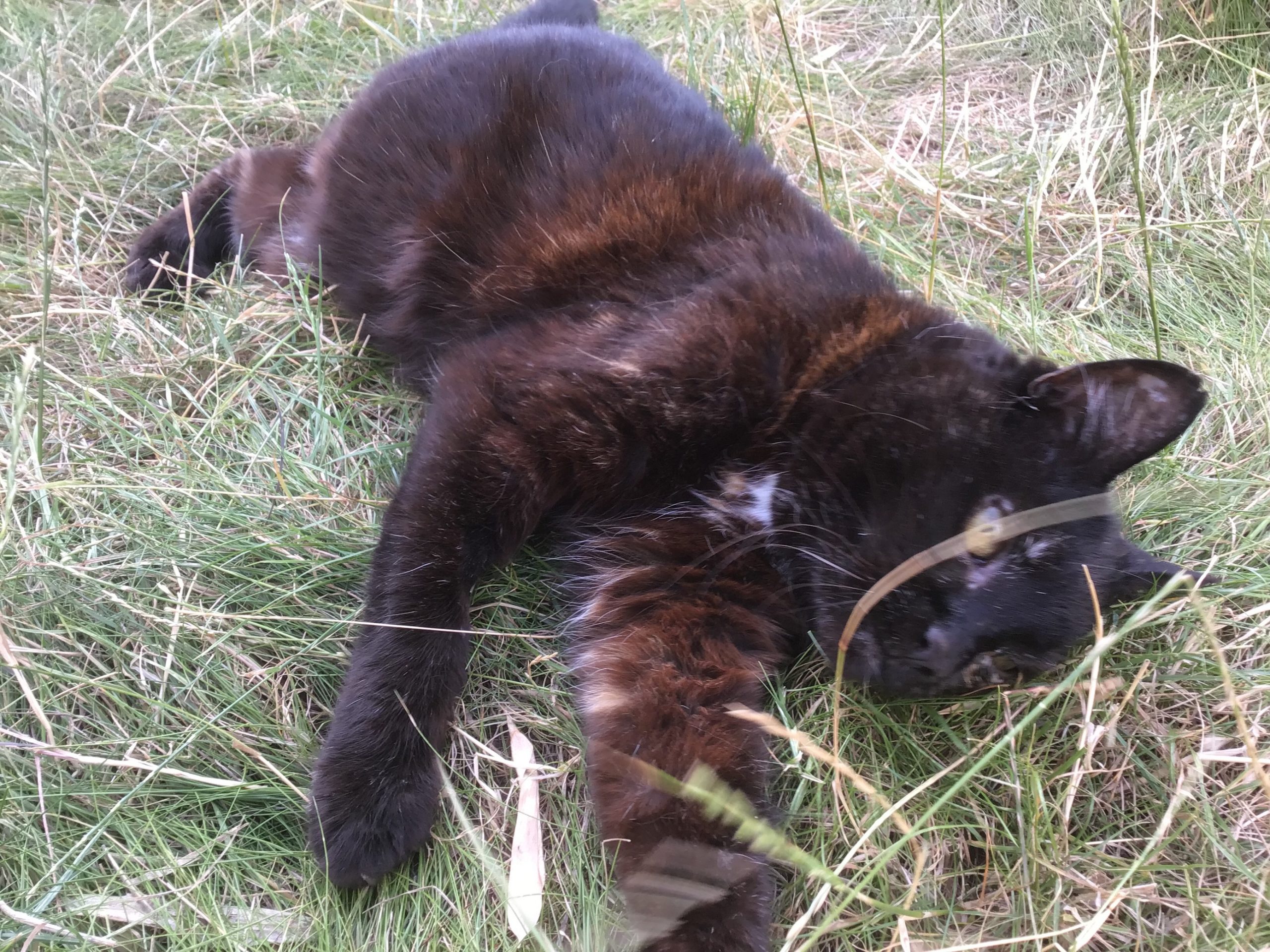 Exploring and shuffling about on her 3 legs. She didn’t take long to find herself a favourite place to snooze on the landing after mastering hopping up and down the stairs . Oh and she loves the garden and she spends most of the day time lying about on the grass stretching out in a safe and secure place for her to relax. She’s also loves climbing up on the sofa having a cuddle and watching the tv while playing with her toys (full of catnip of course)