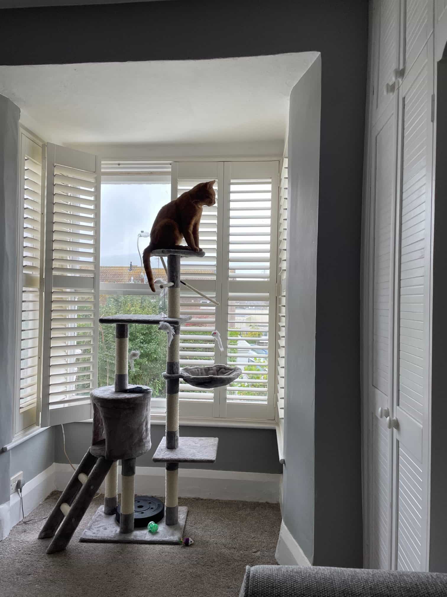 He loves his scratching post by the window and often looks out to have a nose at what’s happening in the street.
