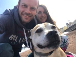 Barney is a 14 year old staffie who came to us a few months ago when his doting owner very sadly passed away. He found